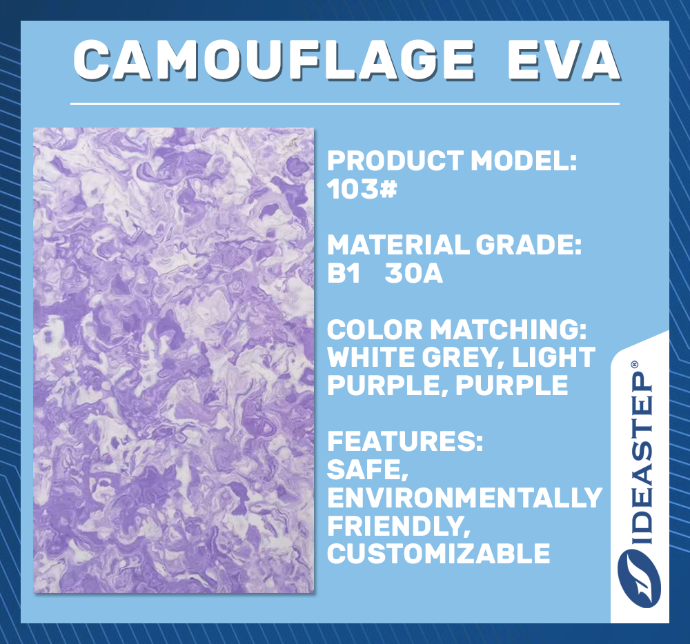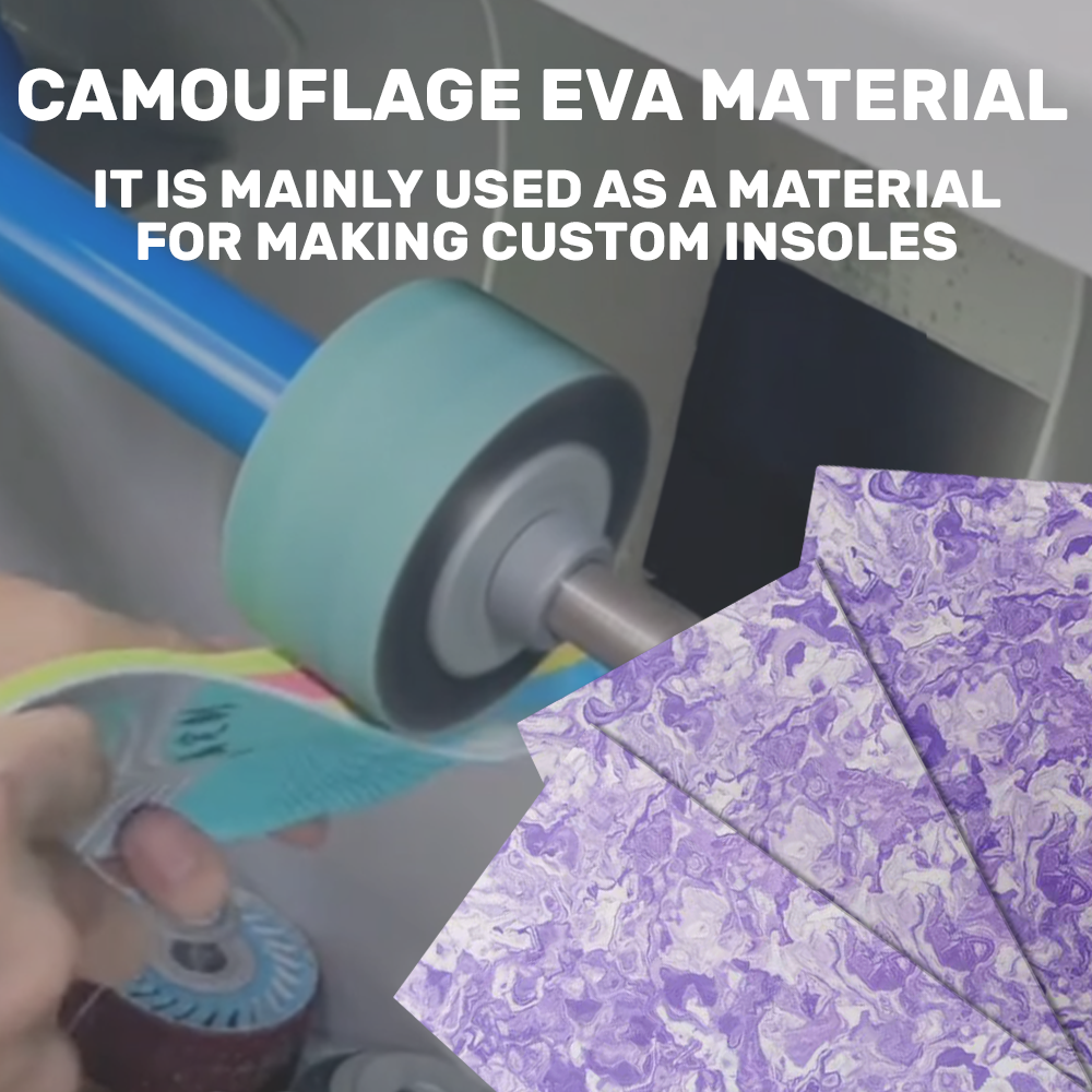 Premium purple camouflage EVA foam sheet 103# designed for custom insoles. Offers strong elasticity, toughness, and is ideal for mass production in professional settings.