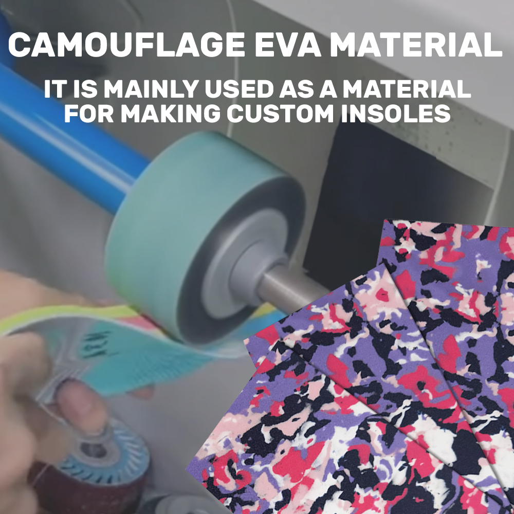 Our camouflage EVA foam sheet is designed for custom insoles, workshops, and professional footwear makers. It offers stable density, strong elasticity, and good shock absorption. The material is lightweight, visually unique, and easy to cut. It is suitable for a wide range of orthotic and shoe applications.