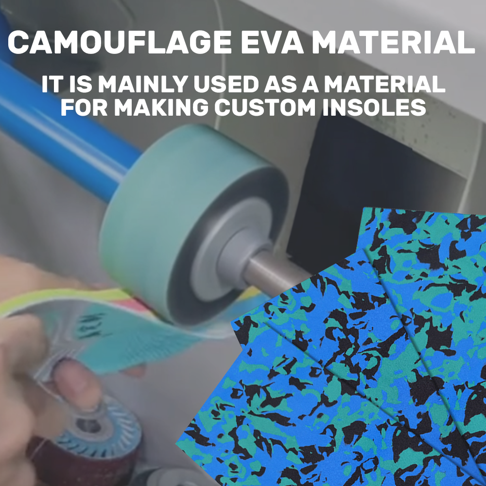 Our camouflage EVA foam sheet is designed for custom insoles, workshops, and professional footwear makers. It offers stable density, strong elasticity, and good shock absorption. The material is lightweight, visually unique, and easy to cut. It is suitable for a wide range of orthotic and shoe applications.