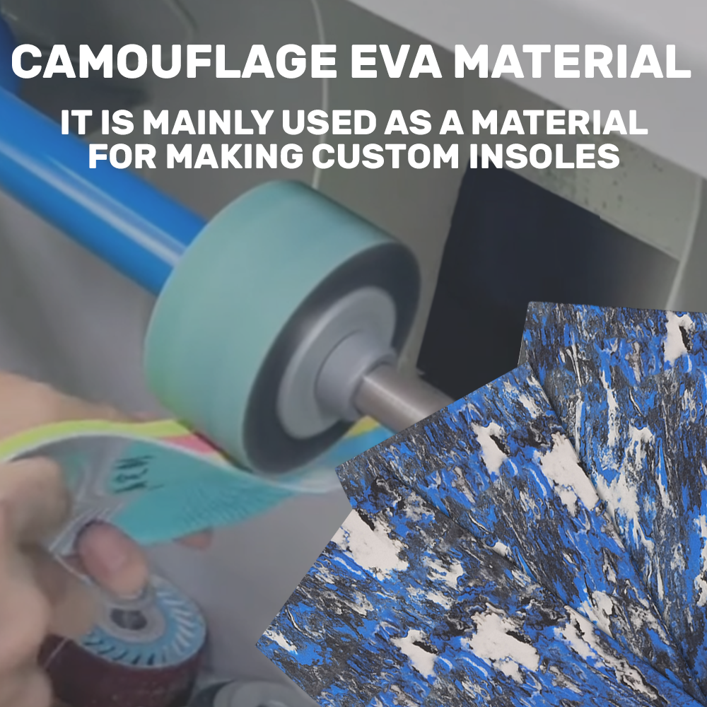 Our camouflage EVA foam sheet is designed for custom insoles, workshops, and professional footwear makers. It offers stable density, strong elasticity, and good shock absorption. The material is lightweight, visually unique, and easy to cut. It is suitable for a wide range of orthotic and shoe applications.
