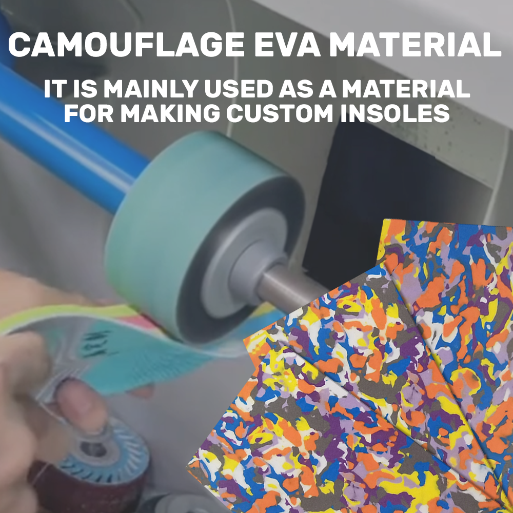 Our camouflage EVA foam sheet is designed for custom insoles, workshops, and professional footwear makers. It offers stable density, strong elasticity, and good shock absorption. The material is lightweight, visually unique, and easy to cut. It is suitable for a wide range of orthotic and shoe applications.